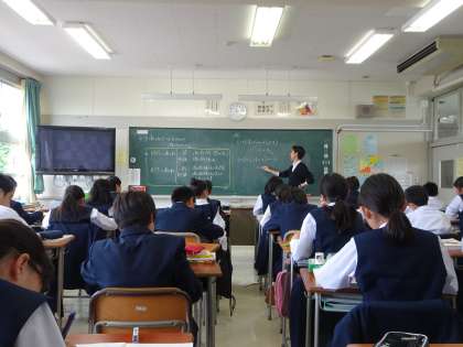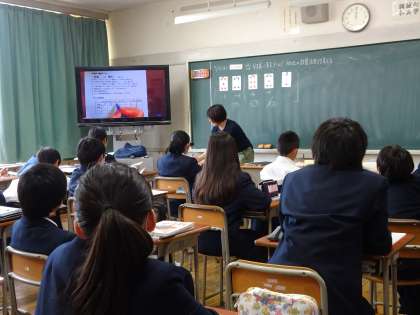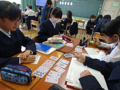 1年生の数学の授業の様子です。トランプを使って正負の数の計算練習をしたり、符号と絶対値から加法の法則を考えていました。(遠藤)