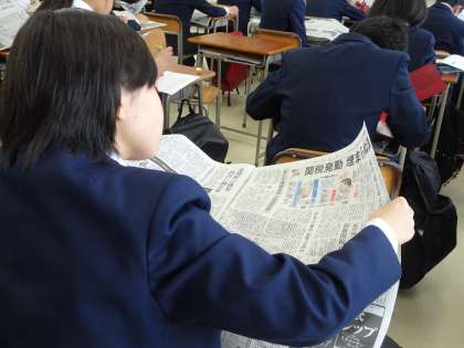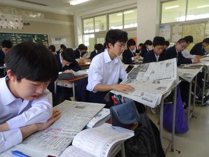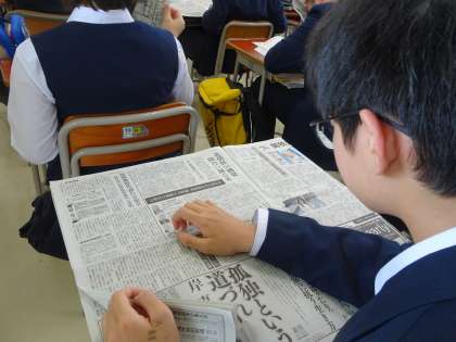 土曜授業の朝はNIEタイムです。今日は朝日新聞を読んでいます。「米中の関税の問題」や「幼保無償化の問題」など、興味のある記事を読んでいます。(遠藤)