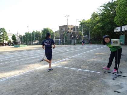 サッカー部の後は、陸上競技部が校庭で活動しています。長距離と短距離に分かれて練習しています。陸上競技部は来週、公式戦のようです。がんばってください。(遠藤)