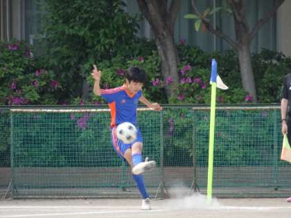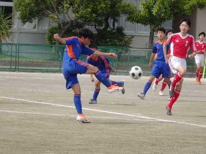 サッカー部の夏季大会のリーグ戦が行われています。対戦校は弦巻中です。相手ゴールに迫り惜しいシーンが何度もありましたが、なかなか点が奪えず0対0の引き分けに終わりました。これで1勝1分、次の試合に勝って1位通過をめざしましょう。(遠藤)