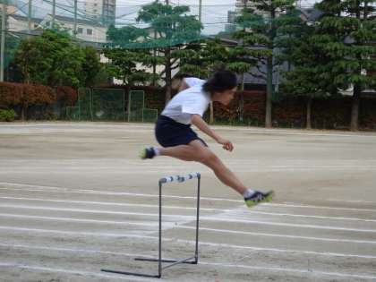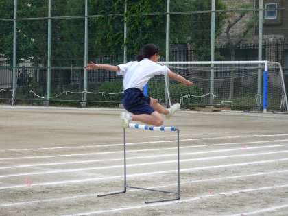 校庭では陸上競技部が活動しています。ハードルの練習をしていました。(遠藤)