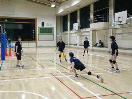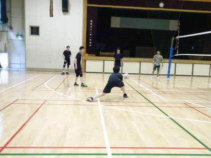 体育館ではバレーボール部が活動しています。男女ともスリーメンをやっていました。声を掛け合ってボールを拾いましょう。(遠藤)