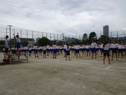運動会の全校練習を行っています。明日の予行に向けて、開閉会式の練習をしています。(遠藤)