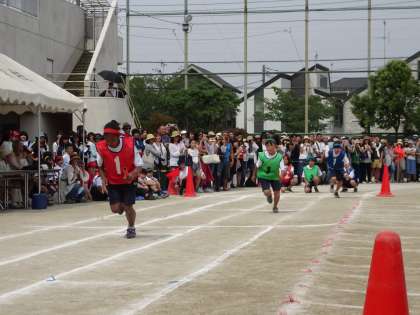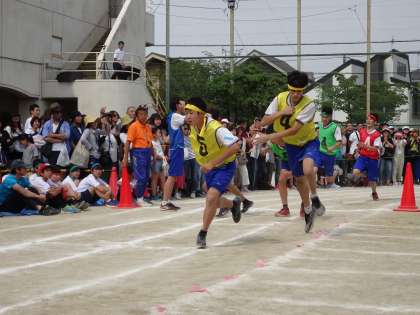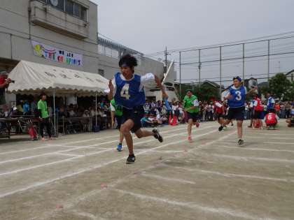 クラス代表リレーの様子です。今年度から各クラス男女3名ずつの代表による真剣勝負になりました。ゴールテープを切るその瞬間まですばらしいレースを繰り広げてくれました。(遠藤)