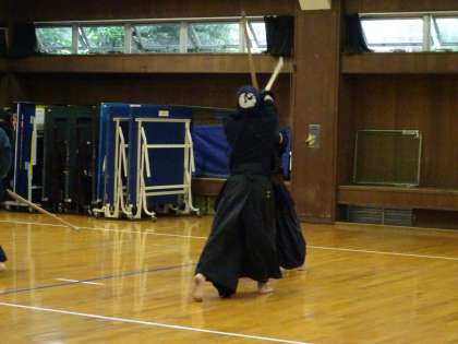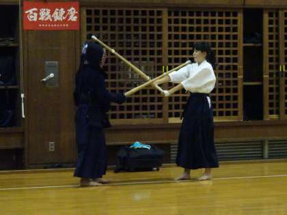 格技室では剣道部が活動しています。気合の入った声と竹刀の合わさる音が響いています。(遠藤)