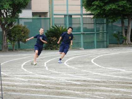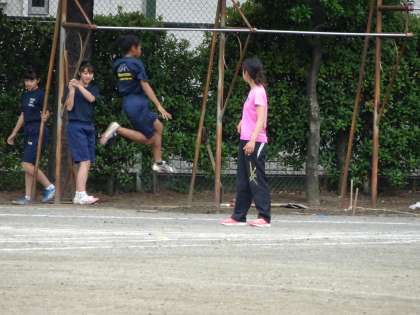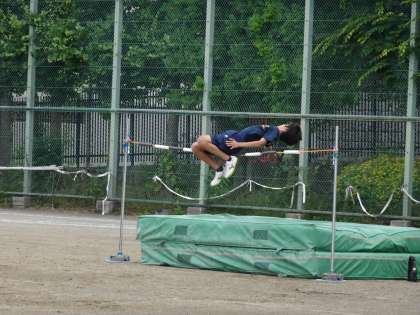 校庭では陸上競技部が活動しています。走り高跳びや走り幅跳びの練習をしていました。(遠藤)