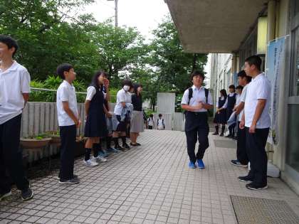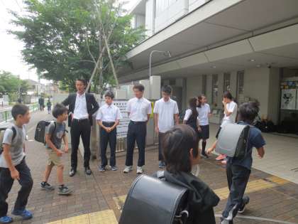 あいさつ運動2日目です。JRC部は駒沢小にあいさつ運動に来ています。(遠藤)