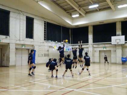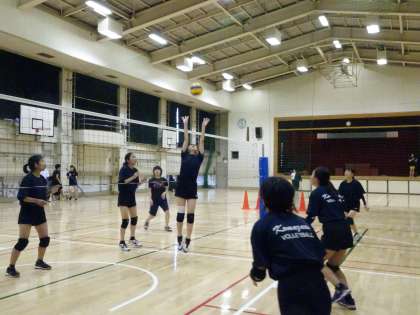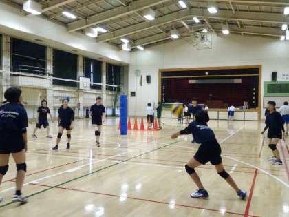 体育館では女子バレーボール部が活動しています。ゲーム形式の練習をしています。日曜日が夏季大会のようです。がんばってください。(遠藤)