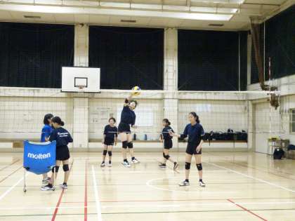 15時からバレーボール部が体育館で活動しています。スパイクの練習をしていました。女子は明日、駒沢中の体育館で夏季大会が行われるようです。がんばってください。(遠藤)