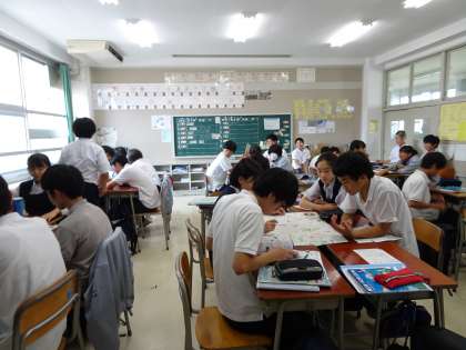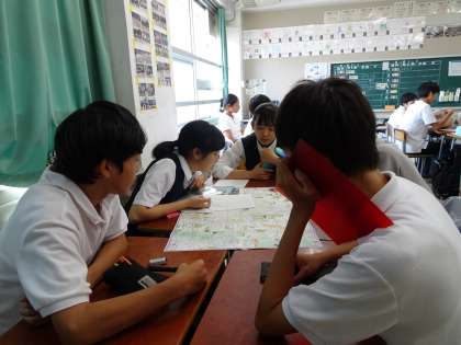 3年生の学活では、修学旅行のコース決めの続きを行っています。京都の班行動の計画を立てています。どこを見学するか、昼食をどこにするか等、みんなで話し合っていました。(遠藤)