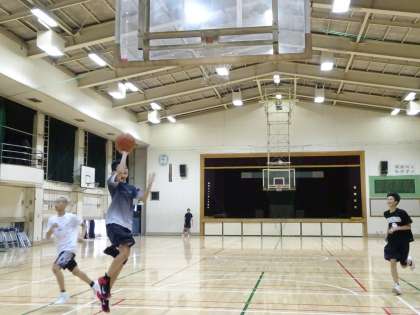 午前中の体育館では男子バスケットボール部が活動しています。明日の試合に備えて、ドリブルやスリーメンなどの練習をしています。明日、ベストな状態で試合に臨めるように準備しましょう。(遠藤)
