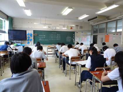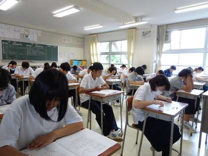 期末考査2日目です。今日は社会、数学、音楽の試験が行われます。問題をよく読んで、何を答えればよいかを考えて解答しましょう。そして必ず見直しをしましょう。(遠藤)