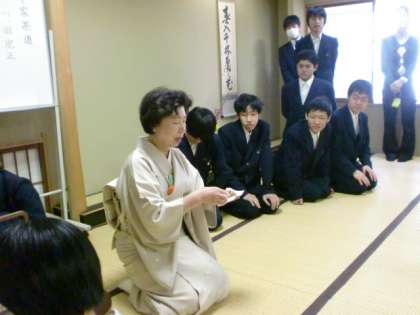 教科日本語に関連して、日本の伝統文化に親しむ機会を作っています。その一環として、茶道教室を実施しました。講師は、茶道部がご指導いただいている裏千家の内田先生です。和やかな中にも真剣に茶道に親しんでいました。