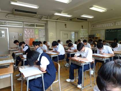 期末考査3日目、最終日です。今日は、国語、技術家庭、保健体育の試験が行われます。時間いっぱいまで見直しをして、最後まであきらめずにがんばりましょう。(遠藤)