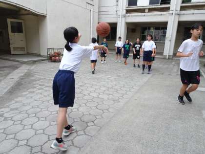 女子バスケットボール部は外練の日です。保健室前でパス練習をしていました。(遠藤)