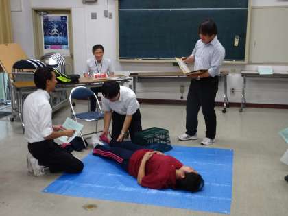 放課後、アナフィラキシー研修を行いました。今回は、少人数で対応するシミュレーションをしました。(遠藤)
