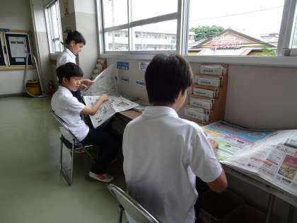 NIEコーナーでは、2年生の男子が新聞を読んでいました。興味のある記事を読んで、自分の知識を広げていきましょう。他社の記事と読み比べをしてみるのも面白いですね。(遠藤)