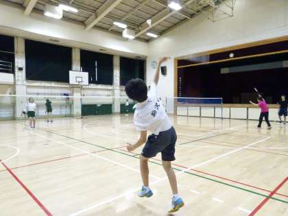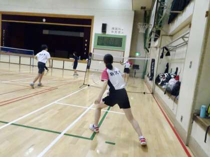 体育館ではバドミントン部が活動中です。明後日が夏季大会の個人戦なので、気合の入った練習をしています。(遠藤)