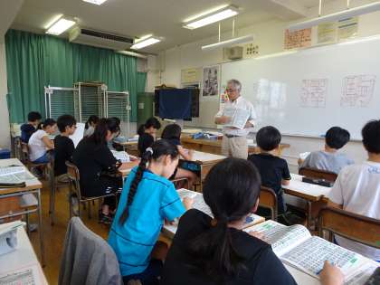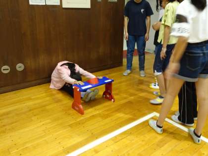 授業体験の様子です。保健体育では体力テストの握力や長座体前屈の測定を体験していました。美術では自分の名前を明朝体やゴシック体でレタリングしていました。(遠藤)