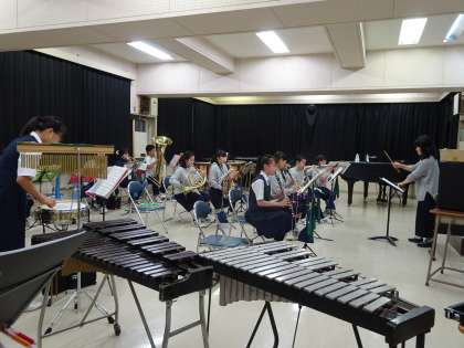 吹奏楽部が第2音楽室で活動しています。2年生と3年生が合奏をしていました。(遠藤)