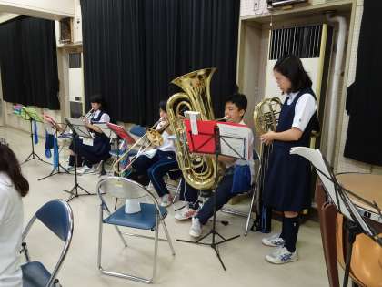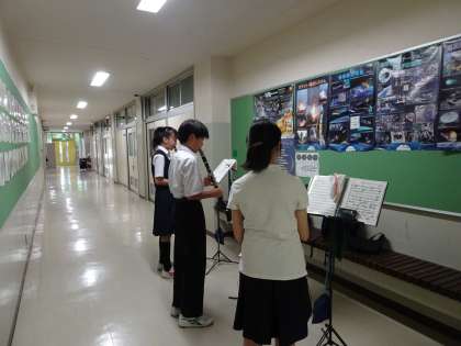 吹奏楽部が活動しています。コンクールにむけてパートごとに分かれて練習しています。(遠藤)