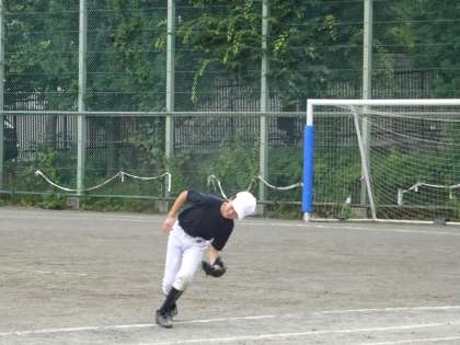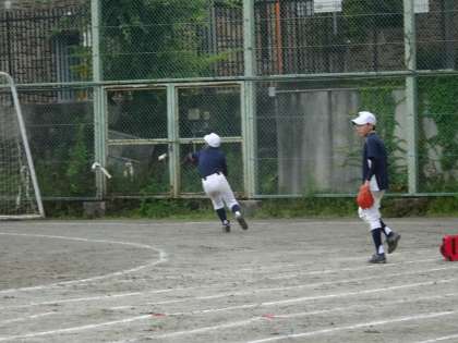 校庭では野球部が活動しています。フライを捕る練習をしています。打球を見て瞬時に前か後ろかを判断しましょう。(遠藤)