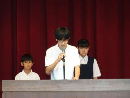 今日は、1学期の終業式です。校長先生のお話と各学年の学級委員長から1学期のふりかえりが伝えられました。(遠藤)