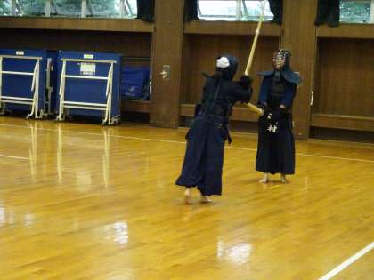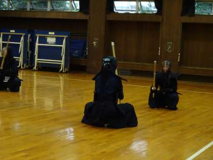 格技室では剣道部が活動しています。防具を着け、面打ちの練習をしていました。(遠藤)