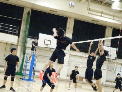 午後の体育館では男子バレーボール部が駒留中と練習試合を行っています。明日は都大会ですね。この試合に勝って、明日に向けてしっかりと調整しましょう。(遠藤)