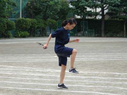 午後の校庭では陸上競技部が活動中です。長距離、短距離に分かれて練習メニューをこなしています。(遠藤)