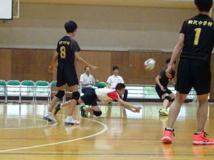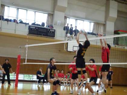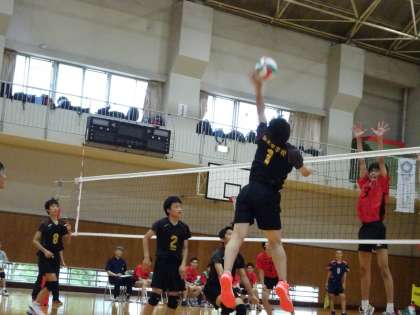 男子バレーボール部が夏季大会の都大会に出場しています。1回戦の相手は芝学園中です。順調に得点を重ね、セットカウント2対0で勝利しました。このあと2回戦です。がんばってください。(遠藤)