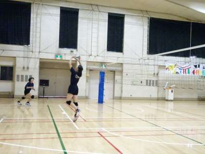 体育館では女子バレーボール部が活動しています。レシーブからスパイクを打つまでの流れを練習していました。(遠藤)