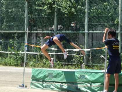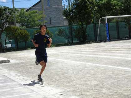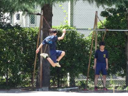 校庭では陸上競技部が活動しています。明日は都大会です。それぞれの種目に分かれてメニューに取り組んでいます。(多久)