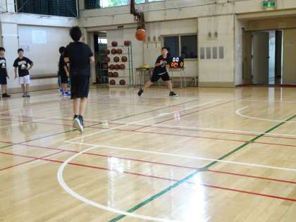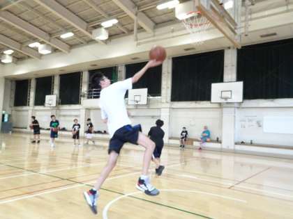 午後の体育館では男子バスケットボール部が活動しています。三角パスやレイアップシュートの練習をしています。ノーマークのレイアップシュートは確実に決められるようにしましょう。(遠藤)