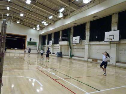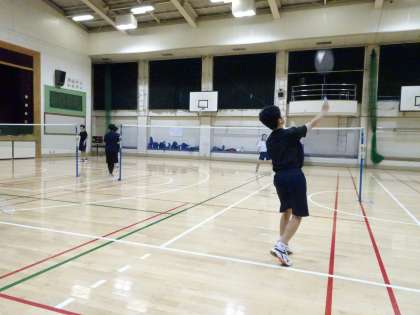 バドミントン部が体育館で活動しています。スマッシュの練習をしていました。(遠藤)