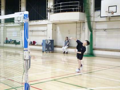 15時から体育館ではバドミントン部が活動中です。2年生はスマッシュの練習をしています。1年生は基礎打ちです。はやく先輩達のようにいろいろなショットが打てるようになりましょう。(遠藤)