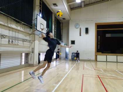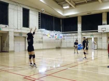 体育館ではバレーボール部が活動しています。男子はサーブの練習をしています。女子はチャンスボールを正確にセッターに返す練習です。(遠藤)