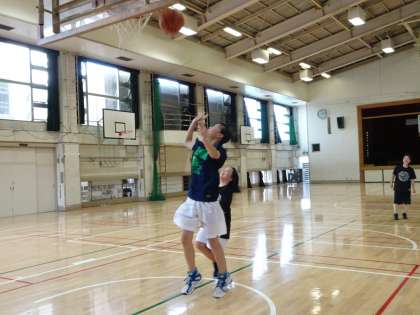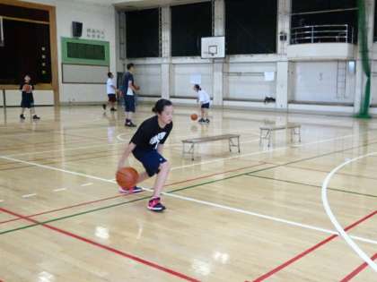 体育館では女子バスケットボール部が活動中です。ハンドリングや1対1の練習をしています。(遠藤)