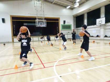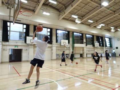 15時から体育館ではバスケットボール部が活動しています。ピボットの練習やレイアップシュートの練習をしています。基礎的な練習が多いですが、集中してきちんと身につけましょう。(遠藤)