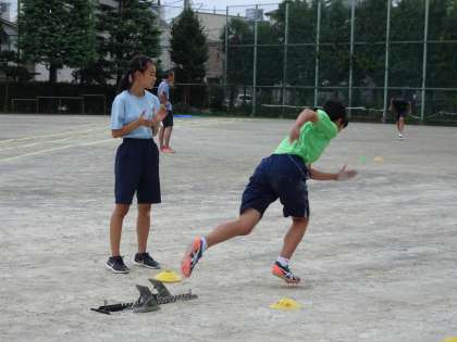 校庭では陸上競技部か活動しています。フィールドとトラックにわかれて練習しています。(遠藤)