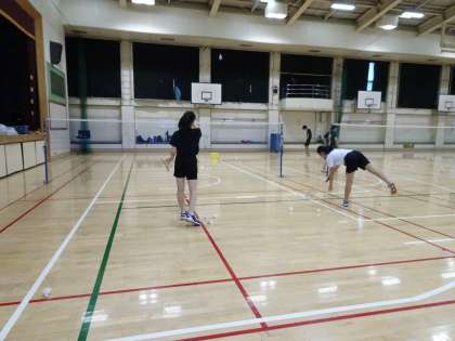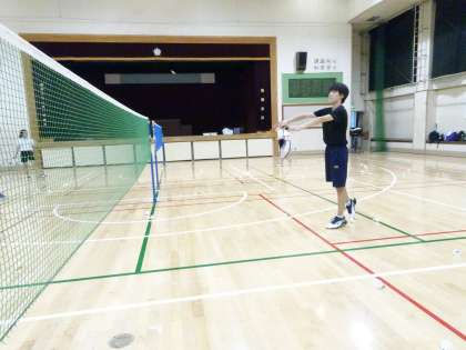 15時からバドミントン部が体育館で活動しています。サーブの練習をしていました。(遠藤)