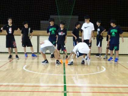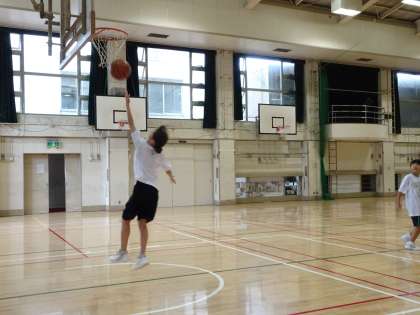 午後の体育館ではバスケットボール部が活動しています。男子はディフェンスフットワーク、女子はシュート練習をしていました。(遠藤)