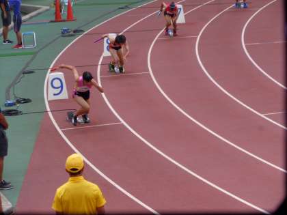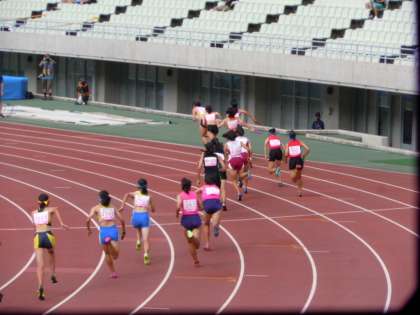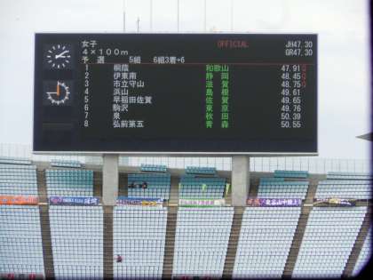 陸上競技部女子400mリレーの全国大会です。大阪の長居競技場で行われました。49秒76で、予選6着でした。全国の舞台で駒沢の名前がコールされ感激です。選手のみなさん、ナイスファイト!(桝田)