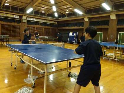 格技室では卓球部が活動しています。新人戦まであと31日のようです。集中して練習しています。(遠藤)