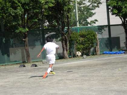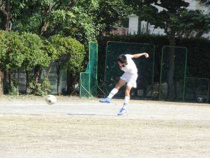 校庭ではサッカー部が活動中です。センターリングの練習をしています。キーパーの位置や動きを見てシュートをするかスルーするのか判断しましょう。(遠藤)