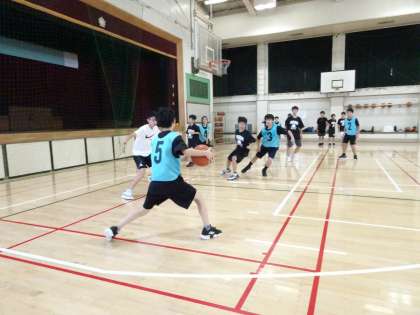 午前中の体育館ではバスケットボール部が活動しています。31日の三茶CUPに向けて、男子はナンバープレーの練習をしています。女子はディフェンスの位置の確認をしています。(遠藤)