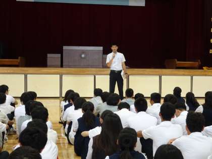 3年生の学年集会の様子です。学級委員から2学期の生活や修学旅行について話がありました。また、先生からは学習面、生活面についての話がありました。(遠藤)