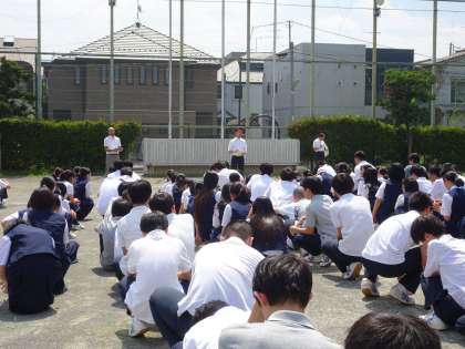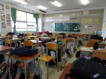 避難訓練を行いました。今回は震度5弱以上の地震が起こったことを想定しての訓練です。この後、保護者への引き渡しと集団下校訓練になります。(遠藤)
