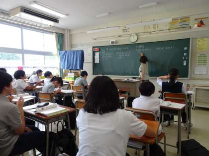 1年AC組の数学の授業です。1次式の計算について学習していました。符号に注意して計算ミスをしないようにしましょう。(遠藤)