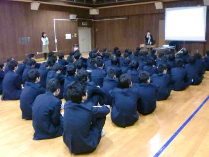 二年生は、助産師さんの講演を聞きました。男女別に分かれ、生命の誕生や出産など、命の大切さを中心に学びました。